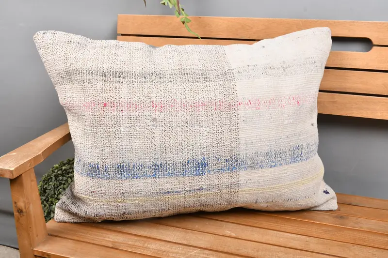 White & Bronze Striped Throw Pillow, Handmade Linen Cushion