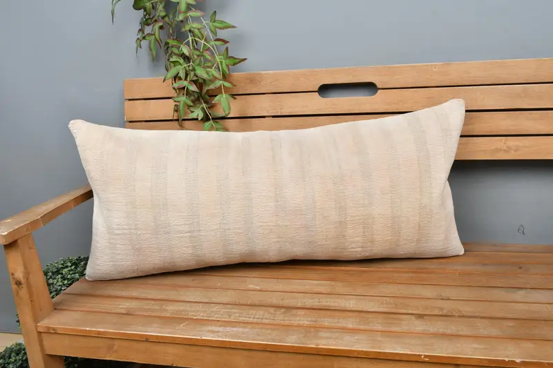 Beige Striped Pillow Cover, Handmade Embroidered Throw Pillow