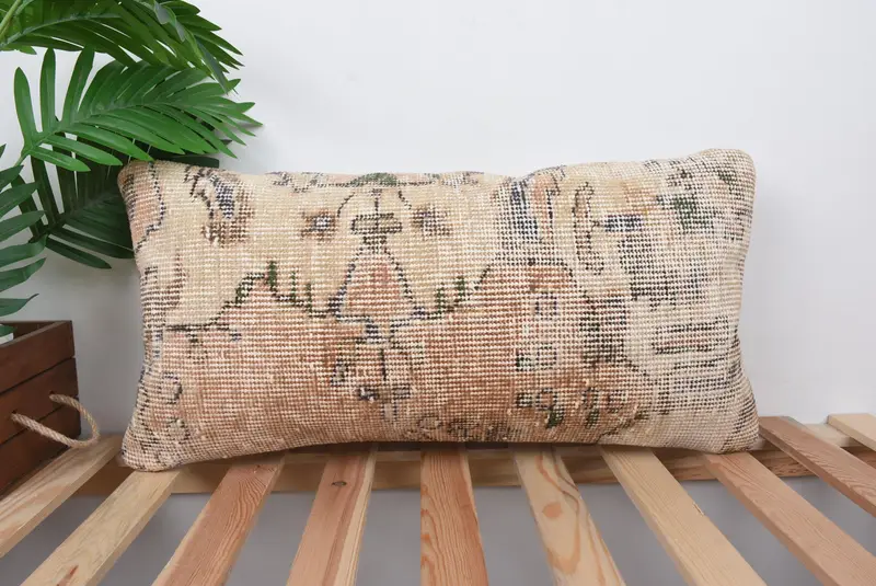 Beige & Orange Southwestern Throw Pillow, Handmade Vintage Cushion