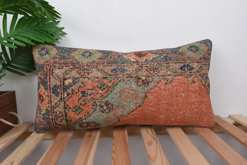 Orange & Bronze Southwestern Throw Pillow, Handmade Rectangle Cushion
