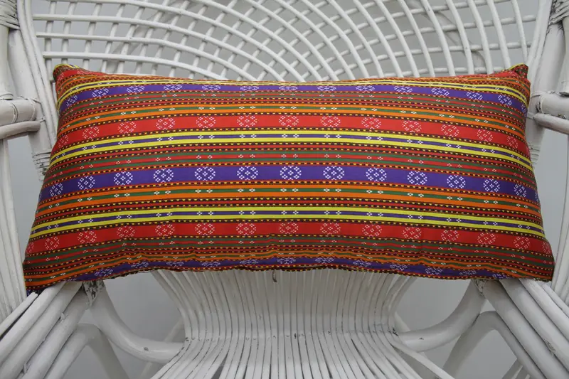 Handmade Embroidered Throw Pillow, 12x24 Vintage Cushion