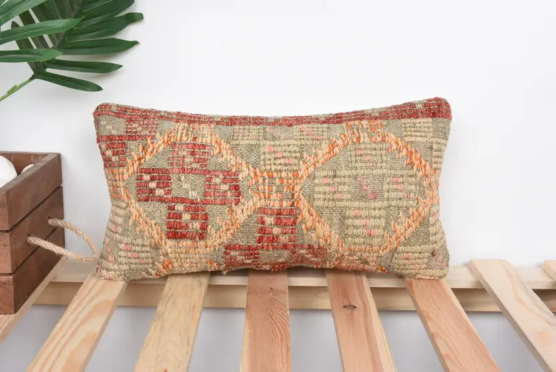 Red Southwestern Embroidered Throw Pillow, Vintage Handmade Pillow