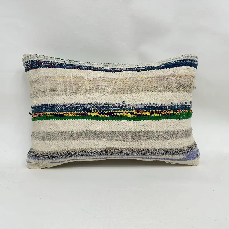 Handmade Striped Throw Pillow, Vintage Embroidered Rectangle Pillow