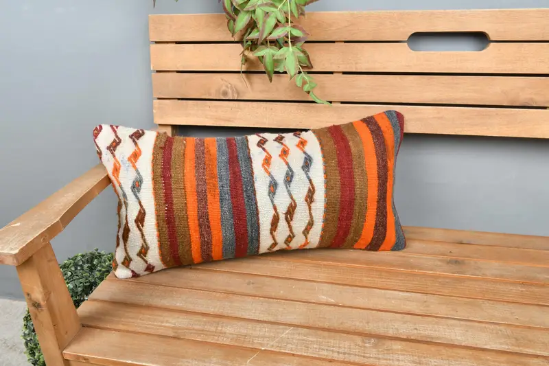 Orange & Red Geometric Throw Pillow, 12x24 Handmade Cushion