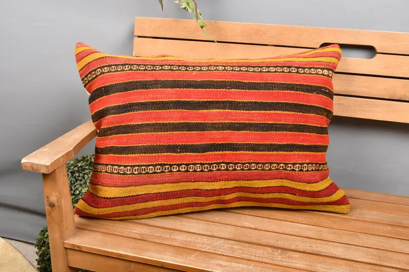 Orange & Brown Striped Throw Pillow, 20x28 Handmade Linen Cushion