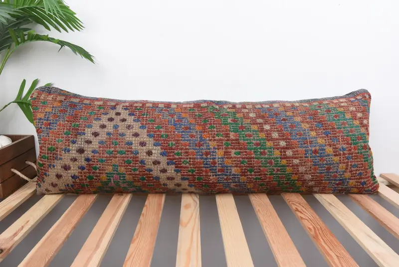 Red Southwestern Embroidered Throw Pillow, 12x36 Handmade Pillow
