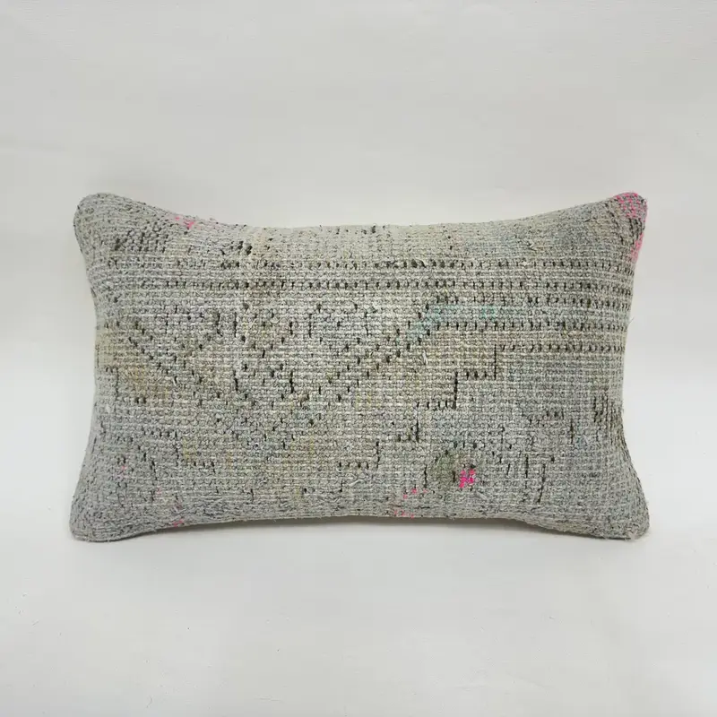 Gray Southwestern Embroidered Pillow, Handmade Vintage Throw Pillow
