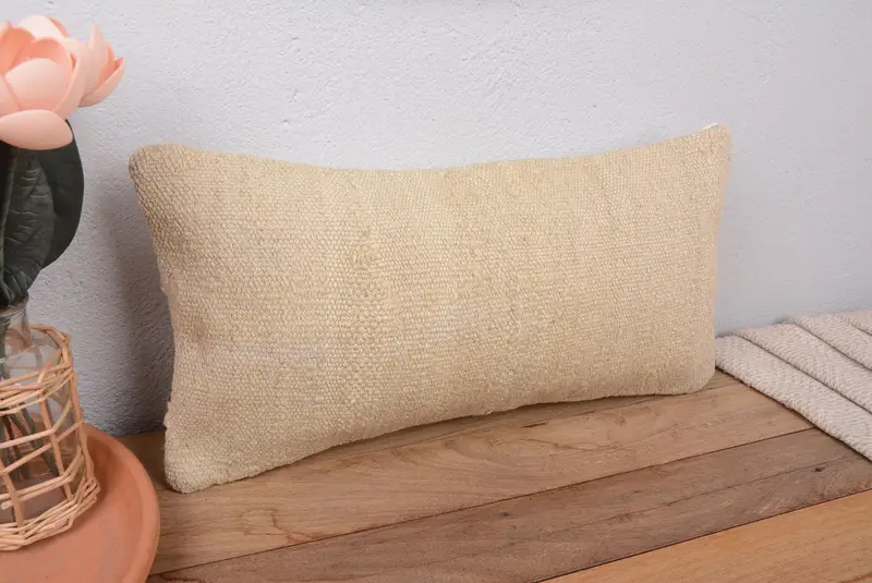 Embroidered Southwestern Beige Pillow, Handmade 10x20 Throw Pillow