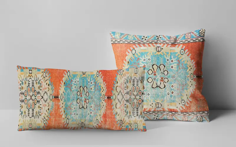Blue Southwestern Throw Pillow, Handmade Embroidered Cushion