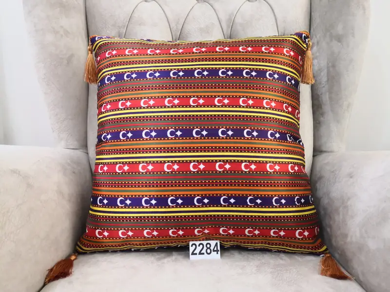 Red and Yellow Striped Pillow, 16x16 Inch Vintage Throw Pillow