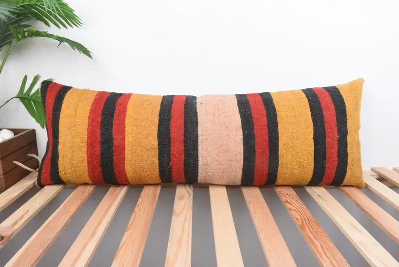 Brown & Red Striped Throw Pillow, 12x36 Handmade Cushion