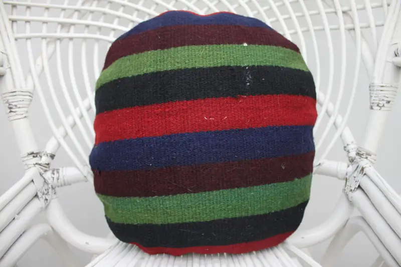 Embroidered Striped Pillow Cover, Vintage Round Throw Pillow