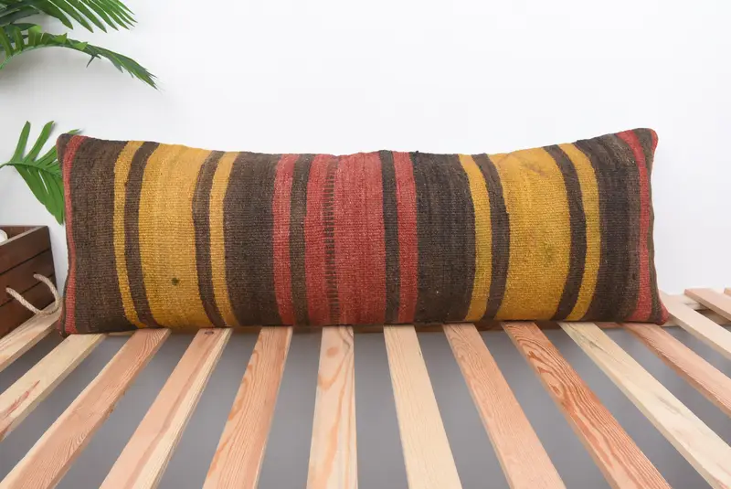 Handmade Brown & Red Embroidered Throw Pillow, Striped Rectangle Throw Pillow