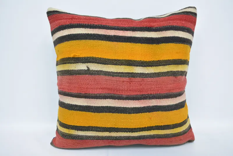 Red & Yellow Striped Throw Pillow, 28x28 Embroidered Cushion