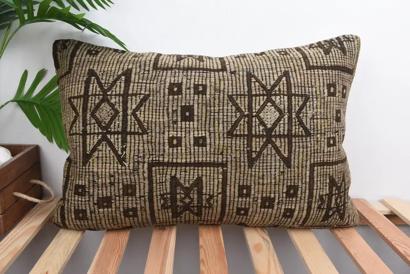 Handmade Southwestern Throw Pillow, Beige & Brown Embroidered Cushion