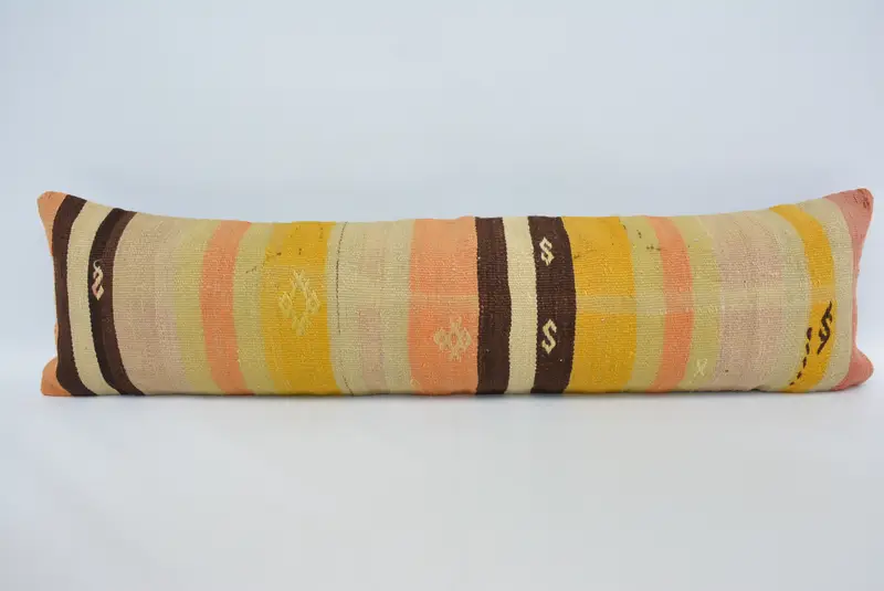 Handmade Hemp & Wool Rectangle Throw Pillow, Vintage Striped Pillow