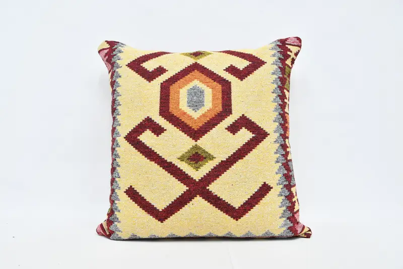 Brown Geometric Throw Pillow, Vintage Embroidered Cushion