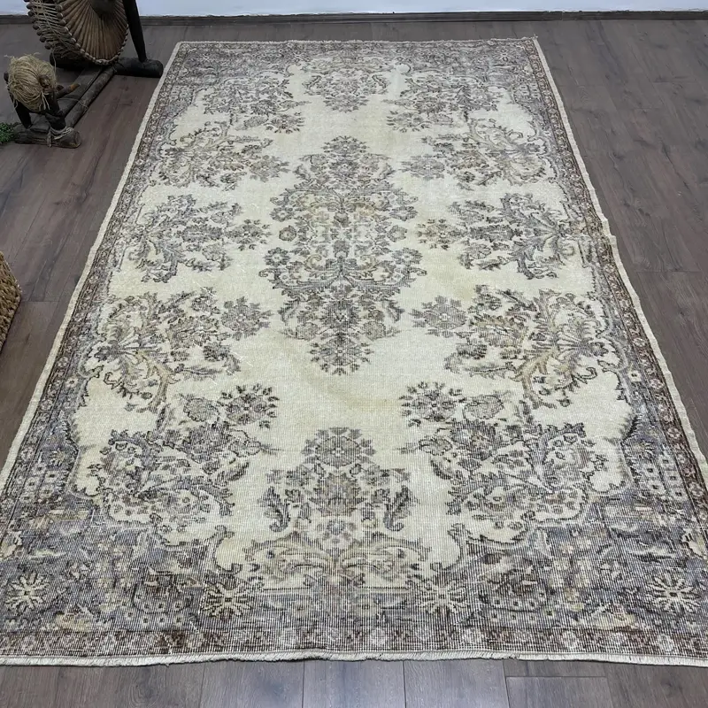 Elegant Beige Rug, 5,4x9,1 ft Floral and Geometric Design