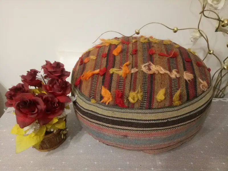 Handmade Striped Wool Throw Pillow, Vintage Circle Pillow Insert