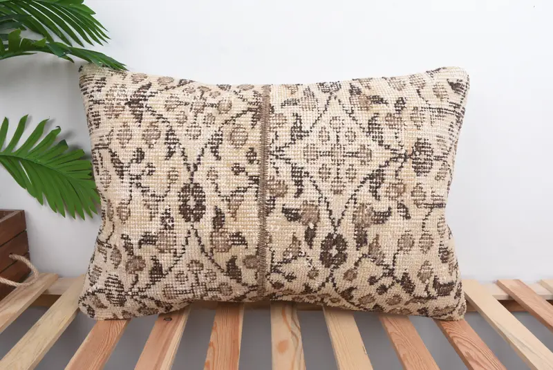 Beige & Brown Patchwork Throw Pillow, Handmade Rectangular Pillow