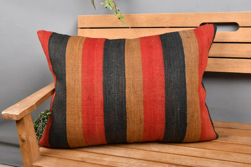 Red & Brown Striped Throw Pillow, Handmade Linen Cushion