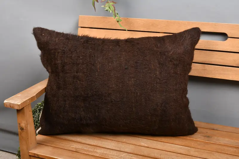Embroidered Brown Throw Pillow, 20x28 Handmade Cushion
