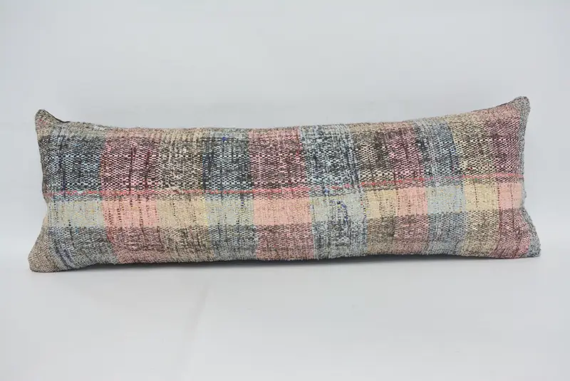 Blue & Brown Striped Throw Pillow, 12x36 Handmade Pillow
