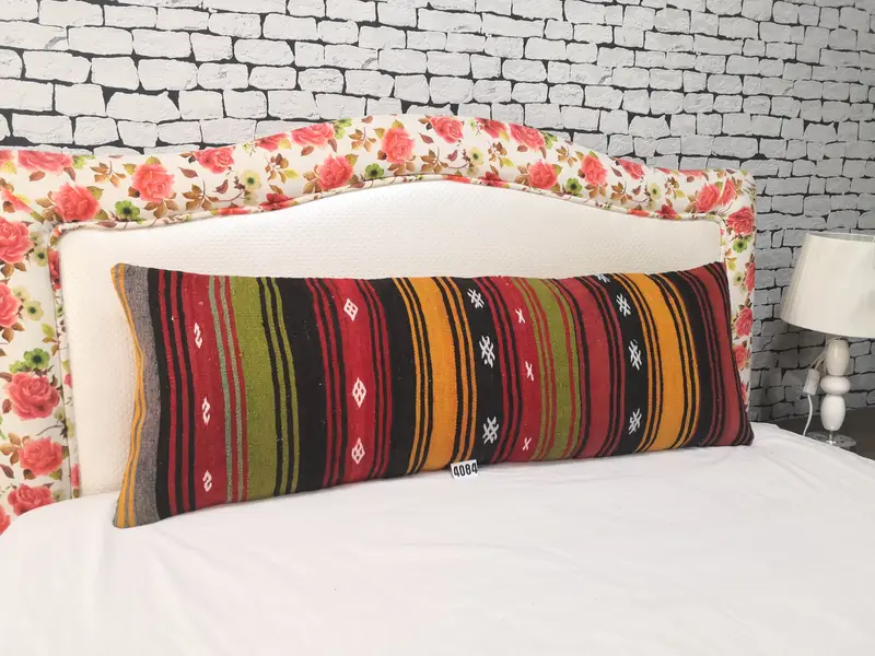 Handcrafted Wool Throw Pillow, Striped Brown & Red Rectangle Pillow
