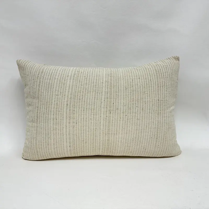 White & Yellow Striped Throw Pillow, Embroidered Vintage Cushion