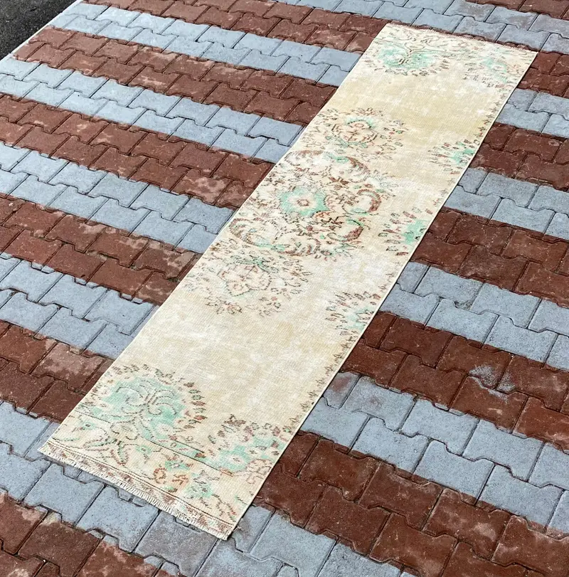 Elegant Beige & Brown Floral Rug, 2.3x8.6 ft