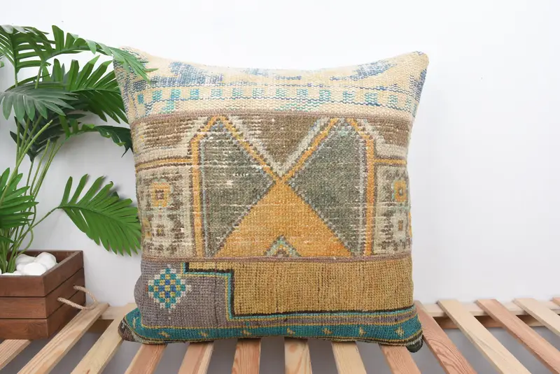 Orange & Brown Patchwork Throw Pillow, 24x24 Handmade Cushion