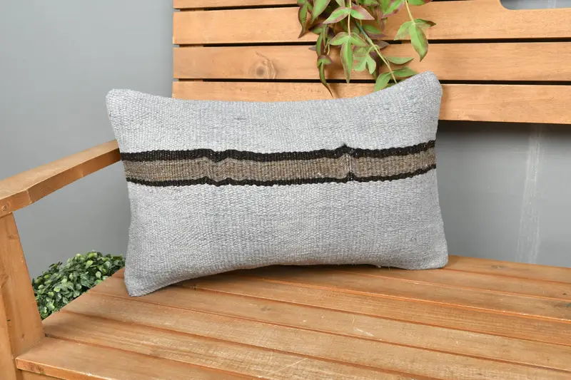 Gray & Brown Striped Throw Pillow, Embroidered Rectangle Pillow