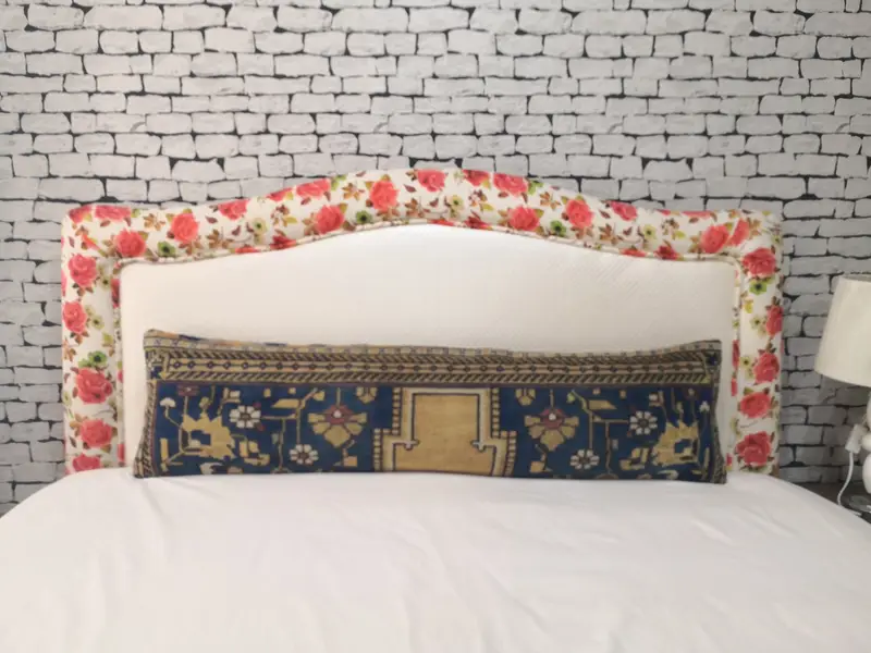 Handmade Blue & Yellow Geometric Wool Throw Pillow, Vintage Rectangle Pillow