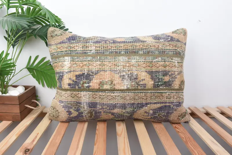 Embroidered Blue Patchwork Throw Pillow, Handmade Vintage Cushion