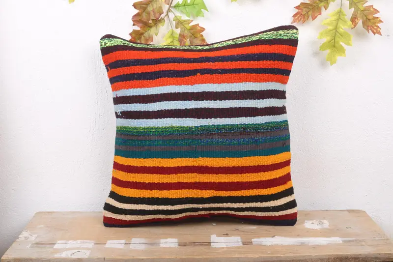 Rainbow Striped Throw Pillow, Vintage Embroidered Cushion