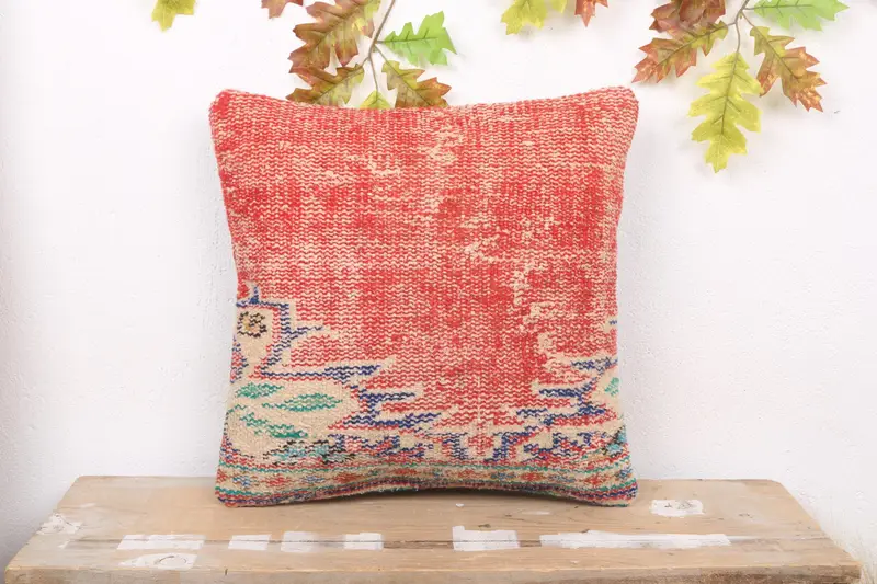 Red Southwestern Embroidered Throw Pillow, 18x18 Vintage Cushion