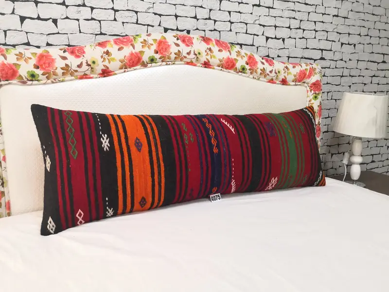 Handcrafted Striped Wool Throw Pillow, Vintage Rectangular Cushion