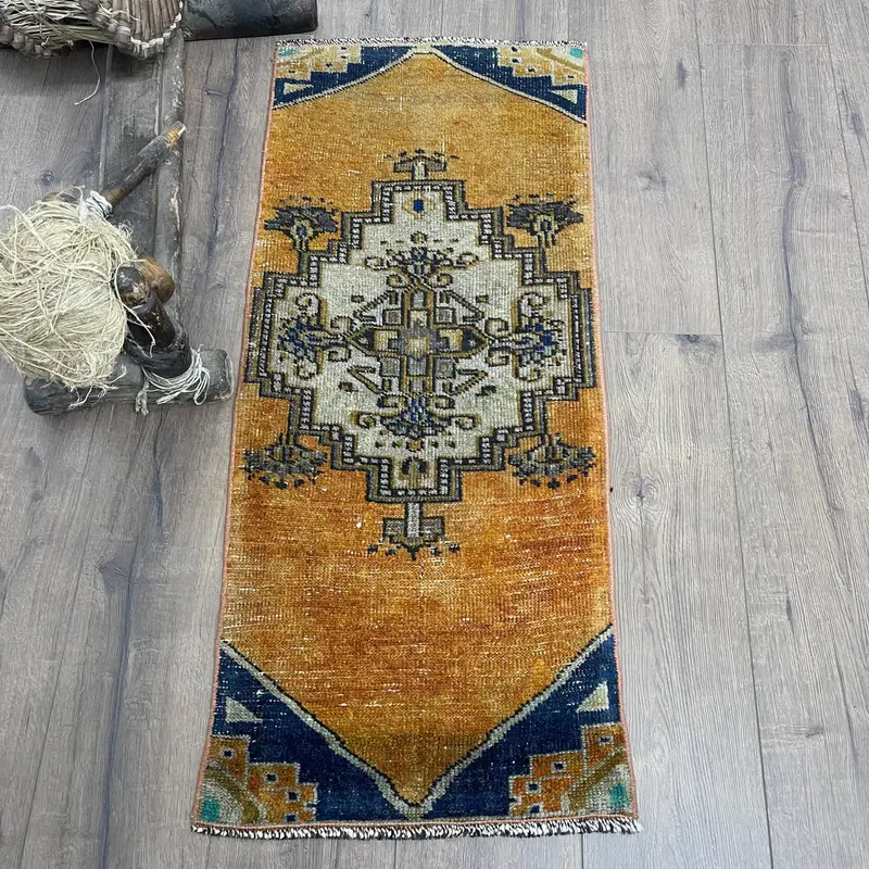 1.5x3.5 ft Orange Patchwork Rug, Beige Accents