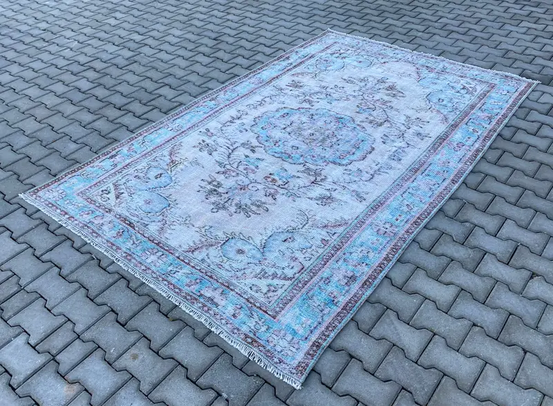 Blue, Beige Floral Rug, 5,9x9,6 ft Chic Decor