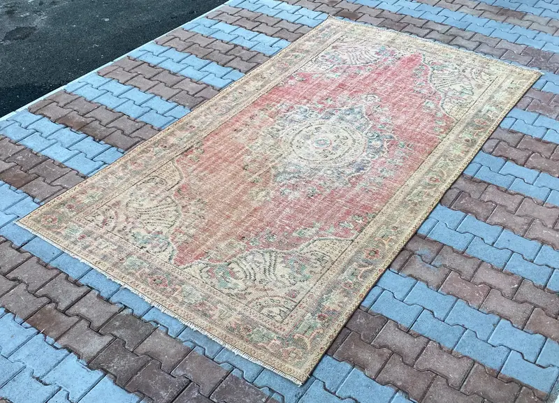 Red and Blue Floral Rug, 5.6x9.8 ft Elegant Decor