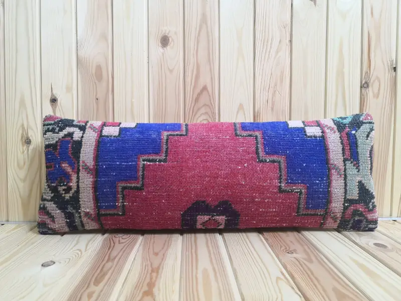 Red Rectangle Throw Pillow, Geometric Wool Cover with Bronze Accents