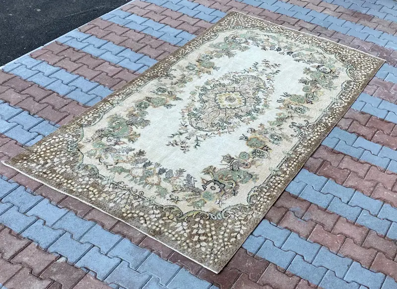 Brown & Beige Rug, 5.4x9.2 ft Floral & Geometric