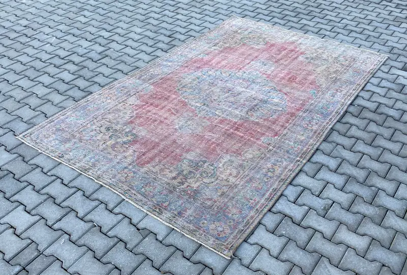 Red and Blue Rug, 6.2x9.5 ft Floral and Geometric