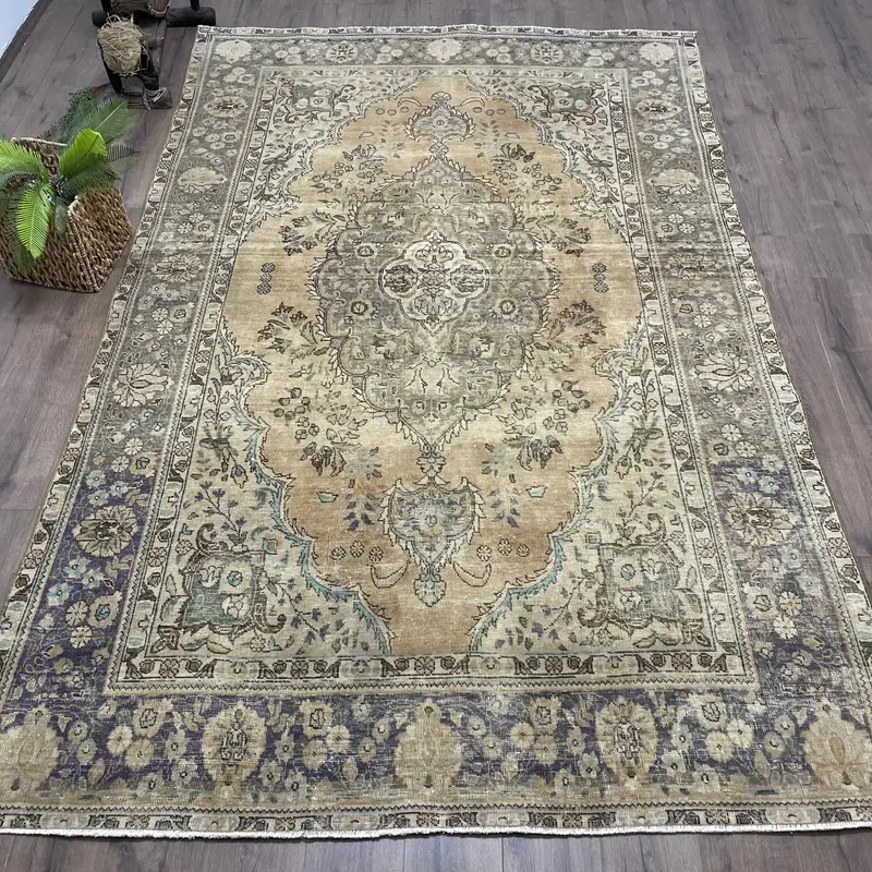 Brown & Green Rug, 6.7x10.3 ft Elegant Solid Pattern