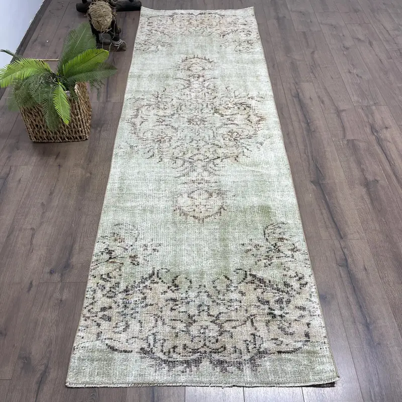 Green Patchwork Rug, 2.9x9.1 ft Elegant Home Decor