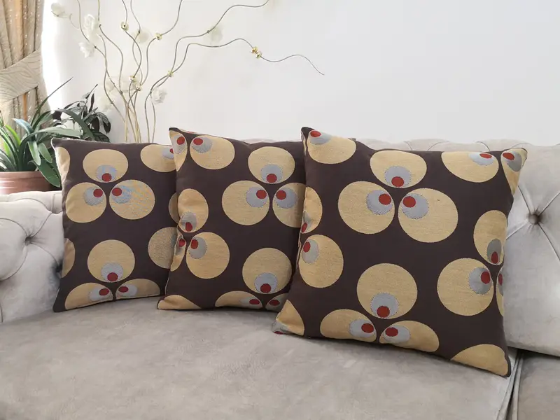 Geometric Patterned Gray & Beige Throw Pillow, Handmade Square Decorative Pillow