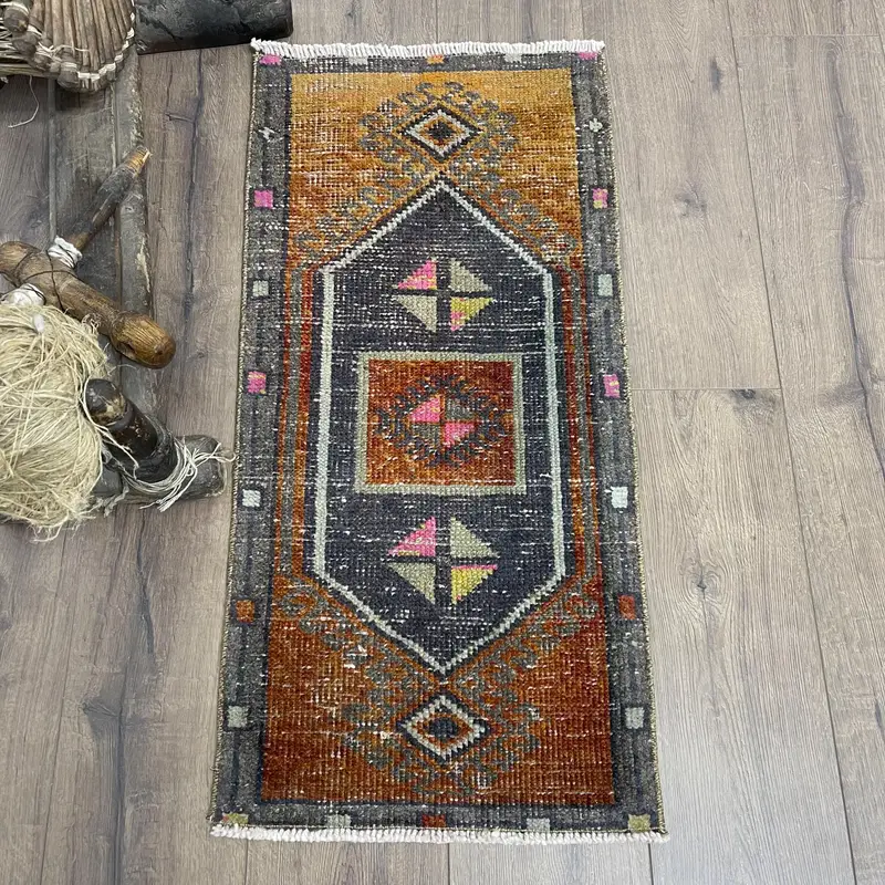 Vibrant Orange & Blue Rug, 1.4x3 ft Oriental Design