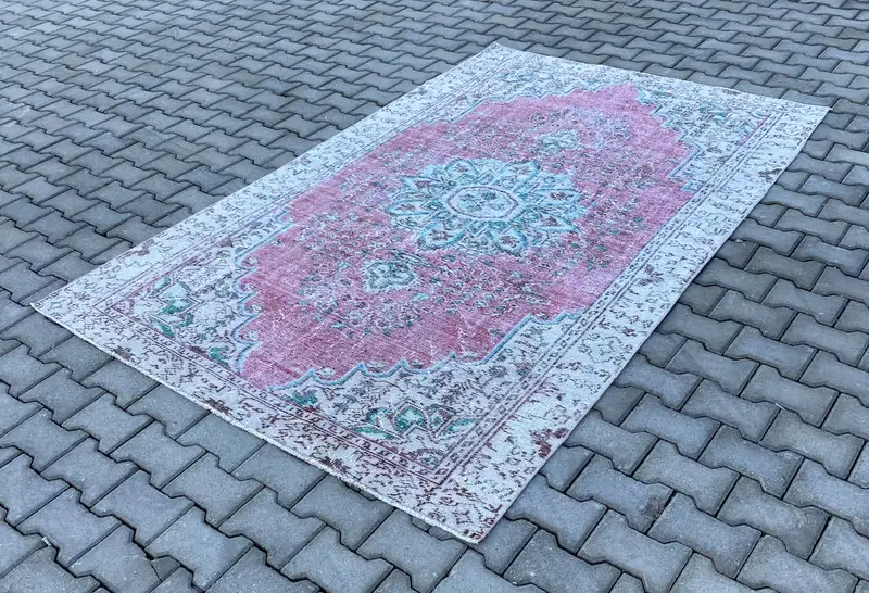 Elegant Pink & Beige Rug, 5.4x9 ft Floral & Geometric