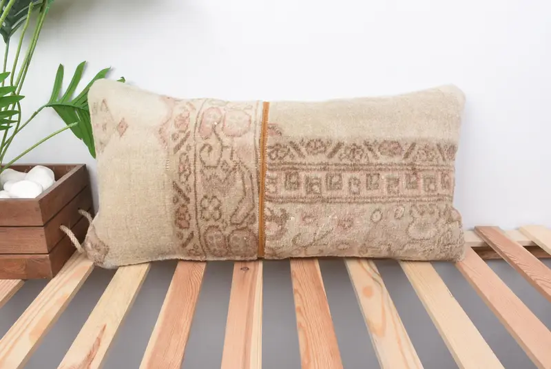Beige & Brown Patchwork Throw Pillow, Handmade Embroidered Pillow