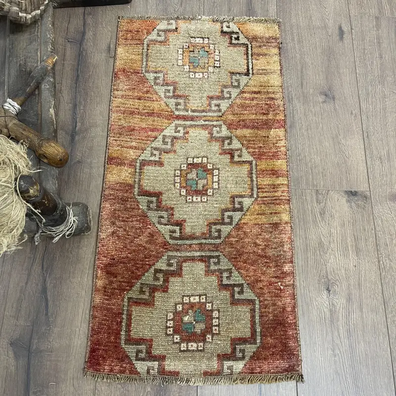 Orange & Beige Polka Dot Rug, 1.3x2.8 ft Chic Decor